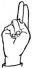 На ћирилици написано АНА РАЛИЋ састоји се из 8 слова [?]. Исписано ћириличном једноручном азбуком за глувонеме: